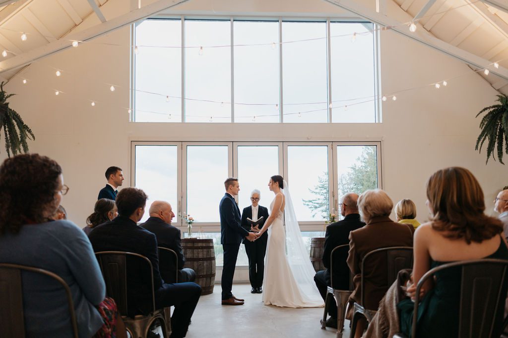 About the property: Why not make it a wedding weekend? Book out the cabins on the property to host your guests for the ultimate destination wedding option from Vancouver Island. With more in-between moments built into your wedding itinerary, it’s the perfect opportunity to spend even more quality time with your guests and getaway as an almost-newly-wedded couple at the same time. The property has quaint cabins that you can book, a grassy ceremony area that overlooks the ocean, and a beautiful covered lodge reception building for the festivities.