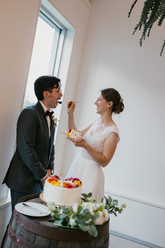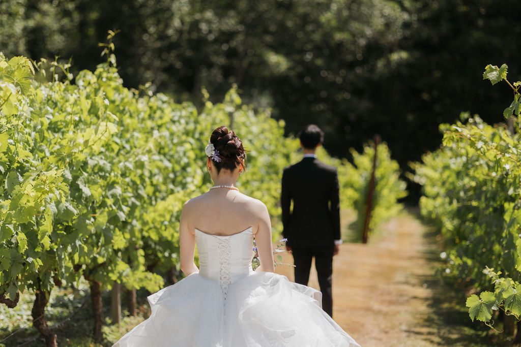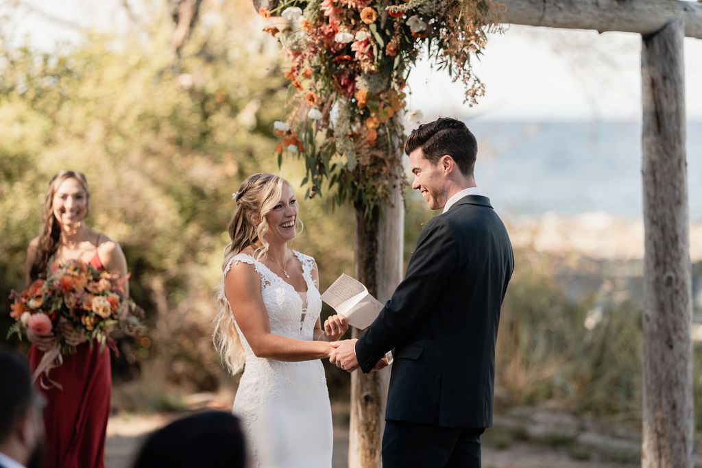 About the property: The beautiful covered barn-style structure covers the ceremony area giving the perfect protection from the sun or other weather. The slender Italian Cypress that line the vineyard creates a romantic, Tuscan aesthetic for the photos. Even though it’s close to Chalet Beach, I would recommend the short drive to Moses Point for a better beach if you are thinking you would like to have a first look, private vows or formal portraits on the beach!